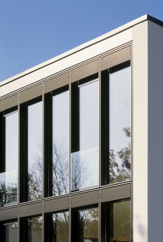 At the same time, existing technology is used intelligently: All heating thermostats in the rooms are arranged so that they are already exposed to the morning sun. This means that the underfloor heating is not only switched off when the room is at the required temperature and the inertia of the heating could cause it to overheat. Instead, the heating switches off when the morning sun shines so intensely that sufficient solar heat gain can be expected from the glazed façades throughout the day.