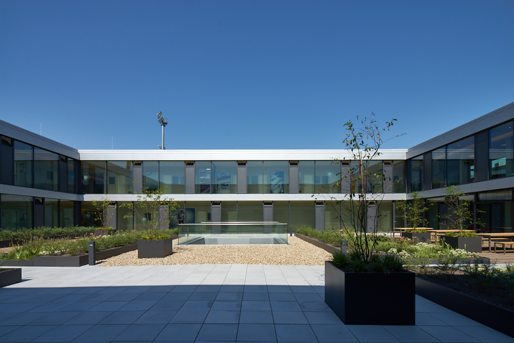 The Red Bulls’ modern and unique training center on Cottaweg, which Managing Director Ulrich Wolter describes as “one of the most dynamic performance centers in Germany”, was completed in 2015. The centerpiece is an 18,800 m² building with a boarding school and hall: an impressive building complex with training, education and accommodation facilities.