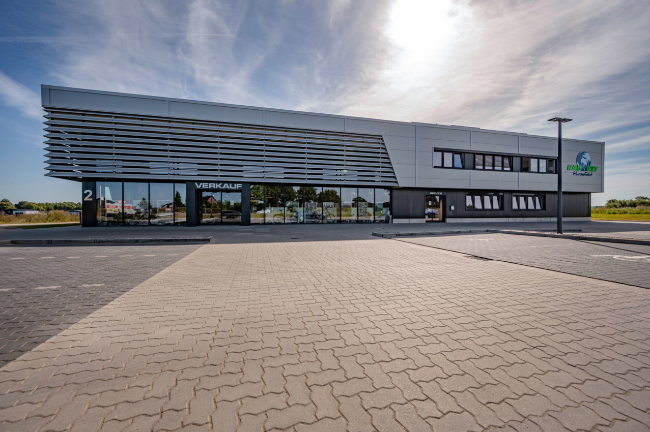 El nuevo edificio cuenta con una zona de ventas de unos 1.000 m², zonas de taller y administración de unos 220 m² cada una y espacio de almacenamiento en tres niveles que suman unos 2.000 m². También existe la opción de ampliar estas zonas con una extensión hacia el este. Así que ya se está pensando en el futuro.