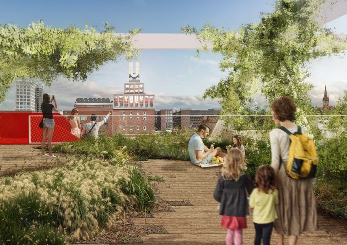 El concepto de SHA prevé un centro deportivo y de eventos abierto y acogedor que pretende complementar y completar la U de Dortmunder y contribuir a realzar el tejido urbano circundante. La sostenibilidad y la adaptabilidad son principios clave del nuevo centro deportivo. Al superponer y apilar sus usos, la huella estructural se minimiza al máximo; la «cabeza verde» en forma de jardín urbano flotante crea biodiversidad urbana, atrapa el polvo y genera un microclima equilibrado. Al mismo tiempo, retrasa la escorrentía del agua de lluvia, aporta una valiosa contribución a la ecología urbana gracias a su diversidad vegetal y crea una identidad especial.