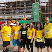 Nous ne faisons pas que déplacer des pierres, nous nous déplaçons aussi nous-mêmes ! C’est une bonne tradition pour SHA de prendre le départ des événements sportifs de Dortmund et de montrer ses couleurs en T-shirts jaune vif – cette fois-ci à la course AOK.