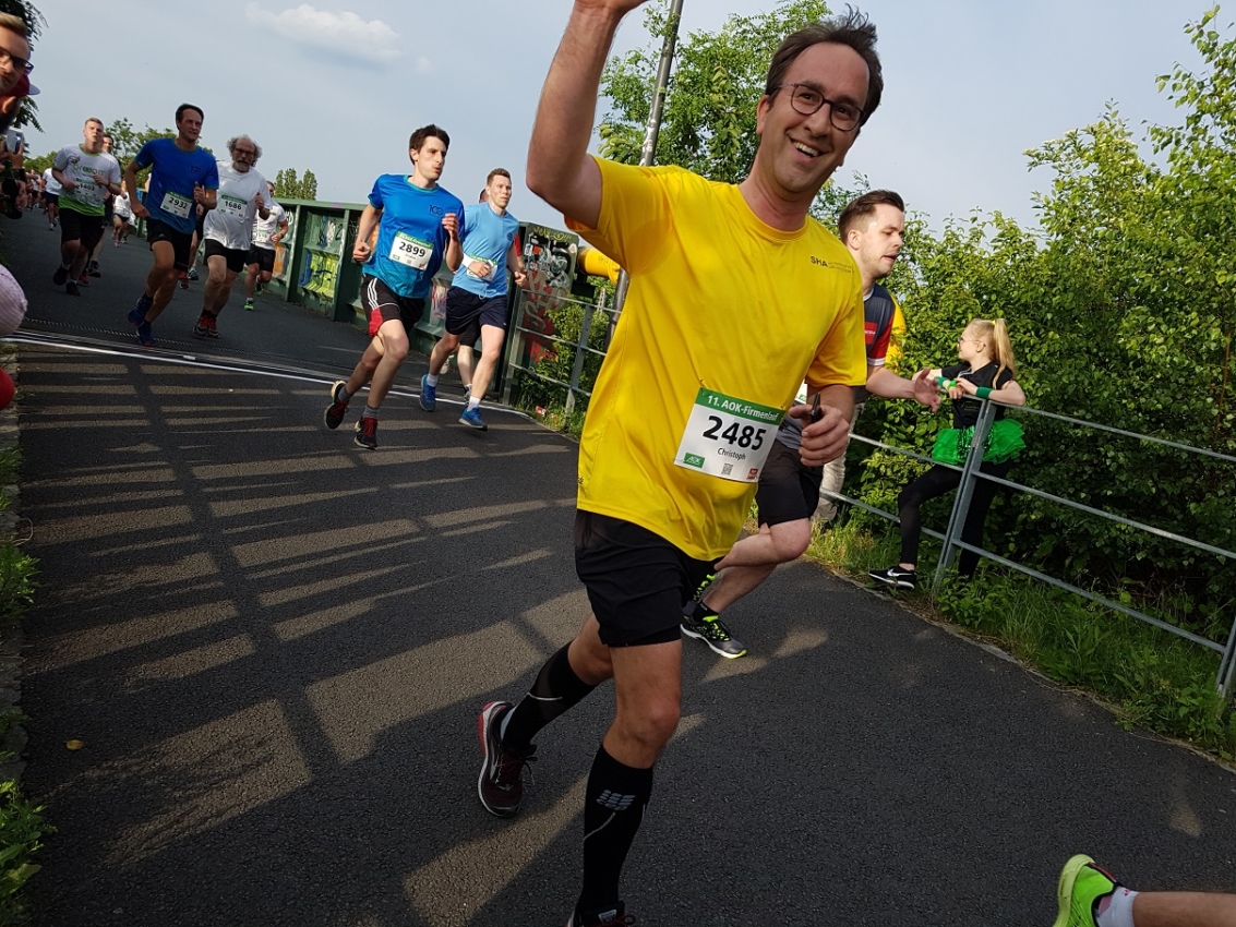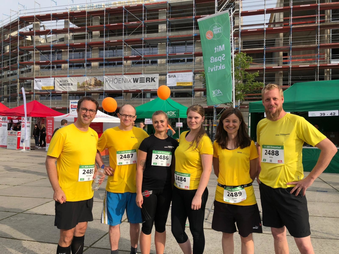 Nous ne faisons pas que déplacer des pierres, nous nous déplaçons aussi nous-mêmes ! C’est une bonne tradition pour SHA de participer aux événements sportifs de Dortmund et de montrer ses couleurs en portant des t-shirts jaune vif. Et c’est ainsi qu’hier, une bonne poignée de vaillants collaborateurs de SHA, très motivés, ont participé à la course d’entreprise AOK. Le temps étant au beau fixe, nous sommes partis de Phoenix-West en longeant le tracé de la ligne Elias et en faisant une fois le tour du lac Phoenix. Nous avons ensuite regagné la place Phoenix avec près de 3000 autres sportifs enthousiastes, dans un magnifique décor industriel.
