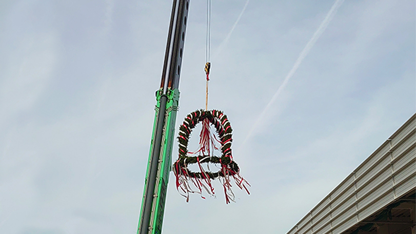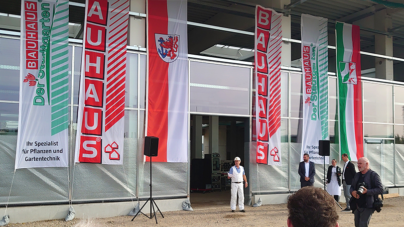 Der Richtkranz hängt: Bauhaus Fachcentrum in Düsseldorf-Rath