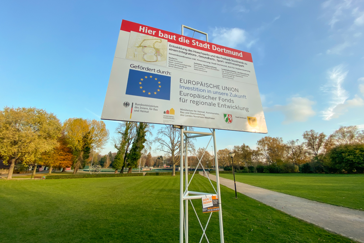 Voor de ontwikkeling van Hoeschpark is in totaal bijna 5 miljoen euro aan projectfondsen beschikbaar, waarvan 90 procent wordt gefinancierd. De financiering komt uit het stadsvernieuwingsprogramma “Sociale Integratieve Stad – Dortmund Nordstadt”, dat wordt gesteund door de EU, de federale overheid en de deelstaat Noordrijn-Westfalen. De rest van de kosten wordt gedekt door de stad Dortmund. Vanwege de EU-financiering is de realisatie van de bouwmaatregelen gebonden aan een strikt tijdschema: “De bouwwerkzaamheden moeten eind 2021 afgerond zijn, zodat de verbouwing van de gebouwen en buitenfaciliteiten tegelijkertijd kan beginnen,” zegt Linnebach.