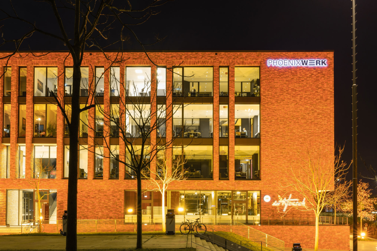 Een rijke oranje kleur lag gisteravond over de stad. De campagne “Orange your City” of “Orange the World” met vele sfeervol verlichte gebouwen in Dortmund en over de hele wereld heeft een serieuze achtergrond: het initiatief is bedoeld om een voorbeeld te stellen tegen psychologisch en fysiek geweld tegen vrouwen. Ongeveer 50 bedrijven uit Dortmund hadden toegezegd een bijdrage te leveren aan het kleurentapijt. Ook de PhoenixWERK schitterde in de symbolische kleur op de “Dag tegen geweld tegen vrouwen”.