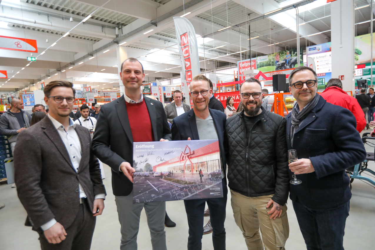 Na de succesvolle voltooiing van het nieuwe BAUHAUS specialistisch centrum in Düsseldorf-Rath woonde het SHA-Team op woensdag 20 maart de openingsceremonie bij. ter plaatse.