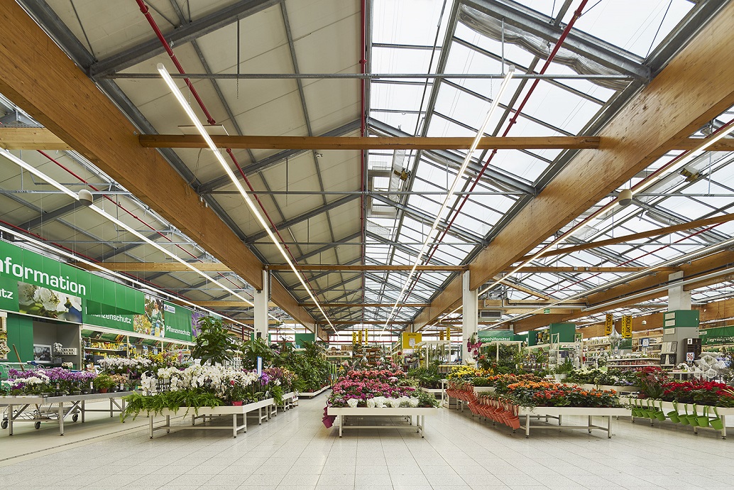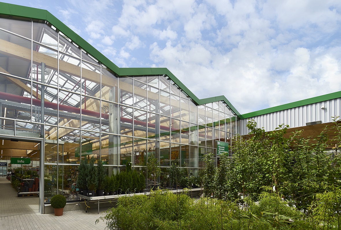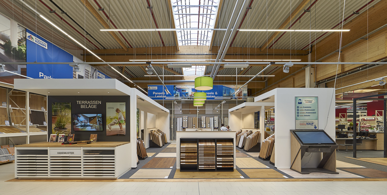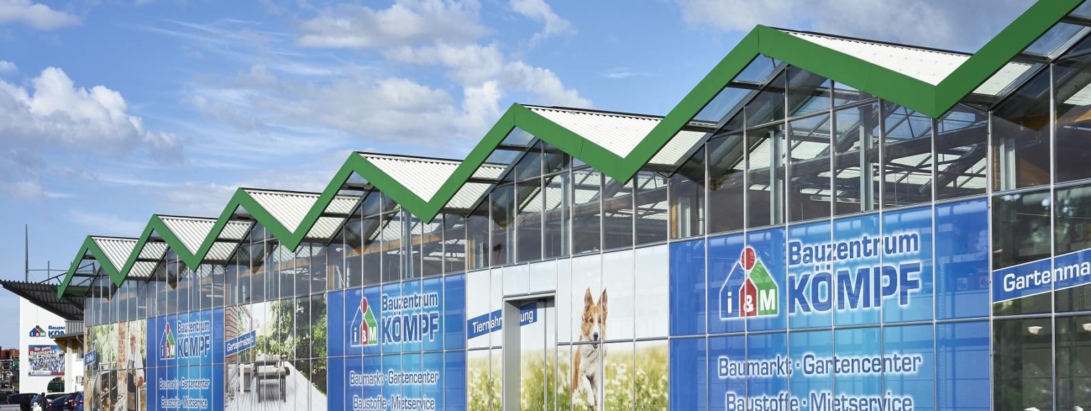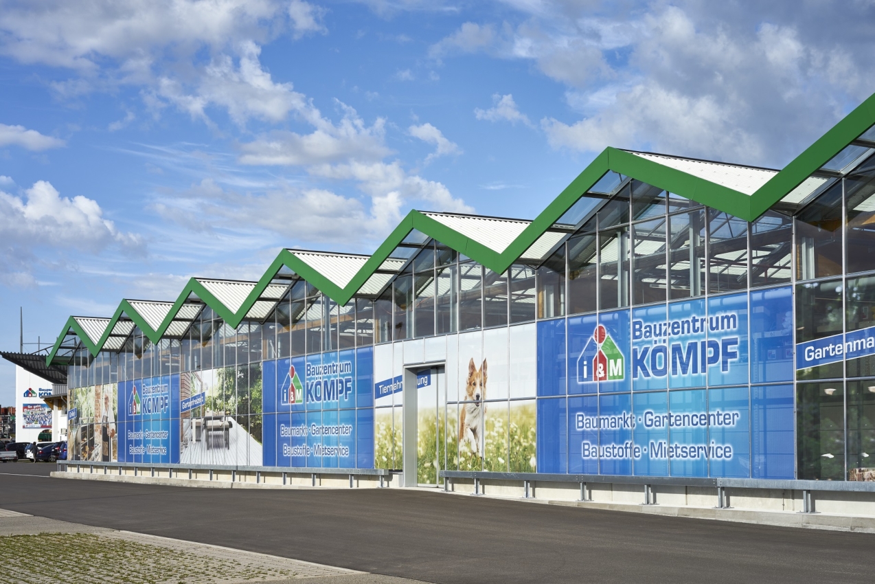 Bauzentrum Kömpf in Calw is een voorbeeld van het grote aantal projecten dat voor de bouwmaterialenhandel in heel Duitsland wordt gerealiseerd. Het toekomstgerichte totaalconcept voorzag vanaf het begin in uitbreidingen. Het bouwproject werd in vier bouwfasen gerealiseerd. De gecombineerde winkel bestaat uit een magazijn, laadzone, speciaalzaak en showroom aan de ene kant en een bouwmarkt met tuincentrum aan de andere kant.
