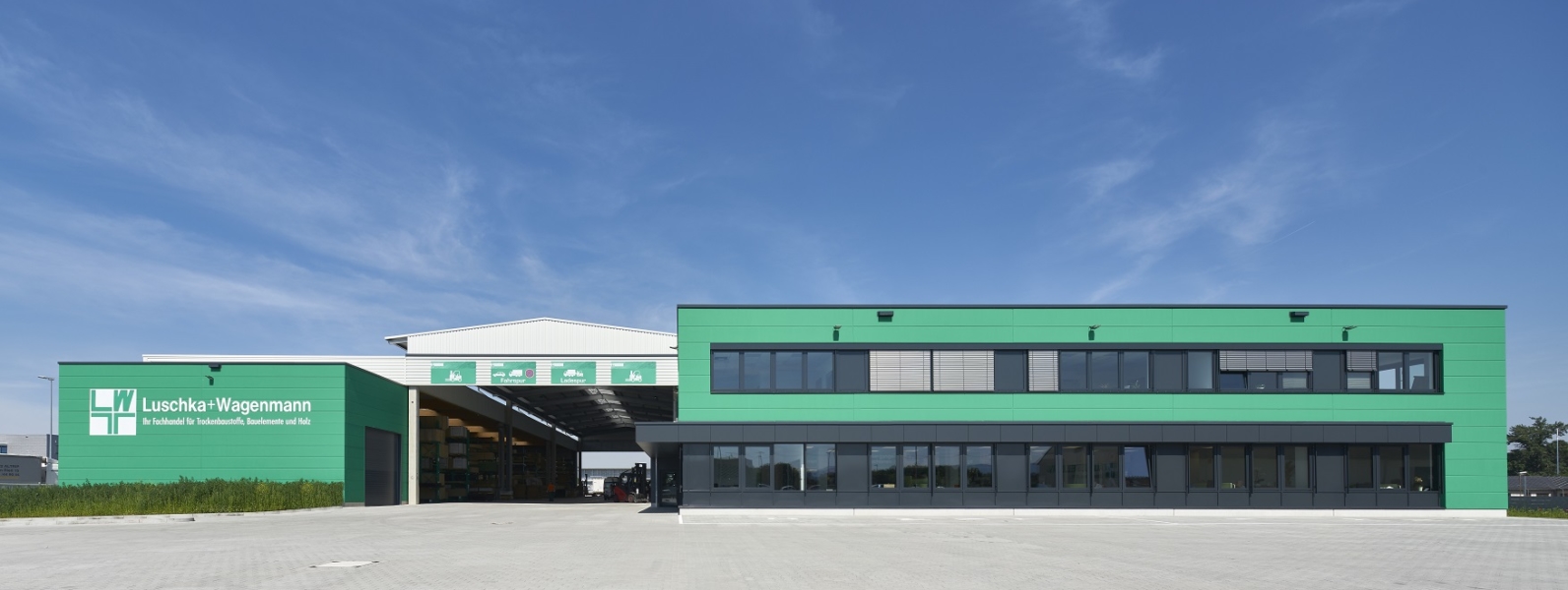 Een moderne bouwmaterialenhandel voor professionele klanten met efficiënte logistiek, snelle service en een showroom waar het best mogelijke advies kan worden gegeven op het gebied van bouwelementen en parketvloeren: Dit is Luschka + Wagenmann op haar nieuwe locatie in Mannheim.