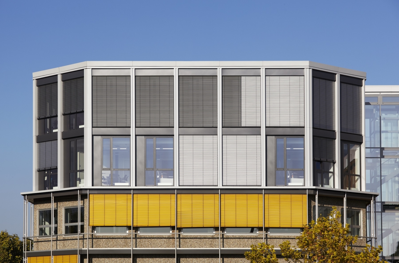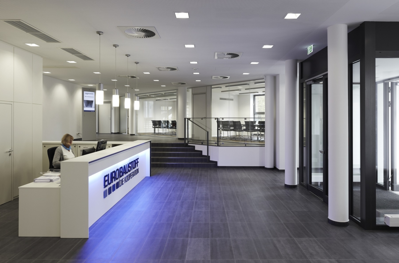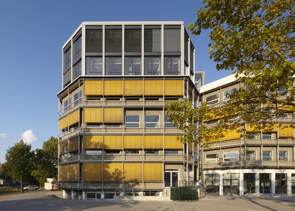 Na twee jaar bouwen schitteren de twee kantoortorens op het hoofdkantoor van de Eurobaustoff-coöperatie in nieuwe glans als een representatieve en open dienstencampus.
