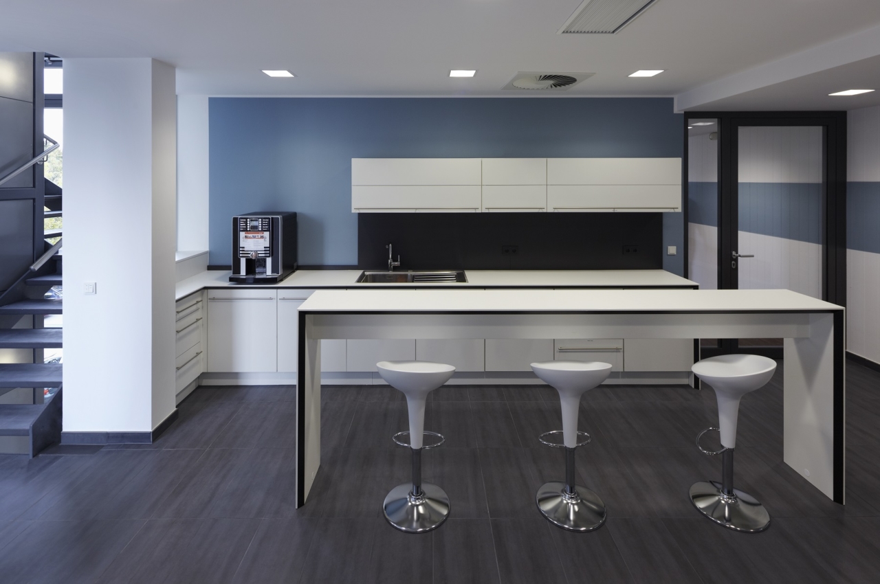 Het bestaande gebouw uit de jaren 1990 werd in twee bouwfasen grondig gerenoveerd en uitgebreid. Alle inrichting werd verwijderd en in plaats daarvan werden lichte en vriendelijke kantoorzones gecreëerd rond een open en uitnodigende gemeenschappelijke ruimte in overeenstemming met de nieuwste normen. Glazen scheidingswanden en een flexibele plattegrond bevorderen de communicatie.