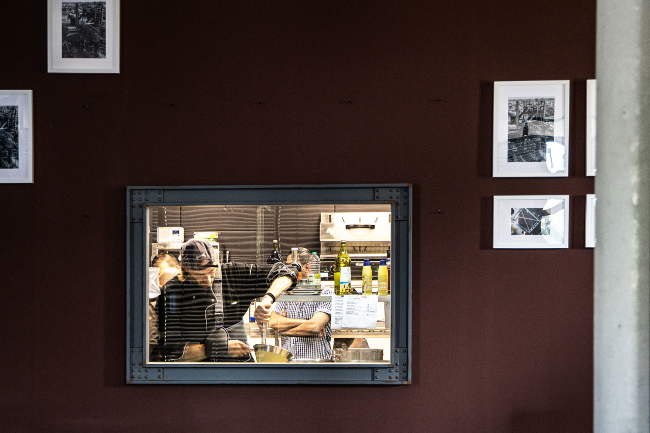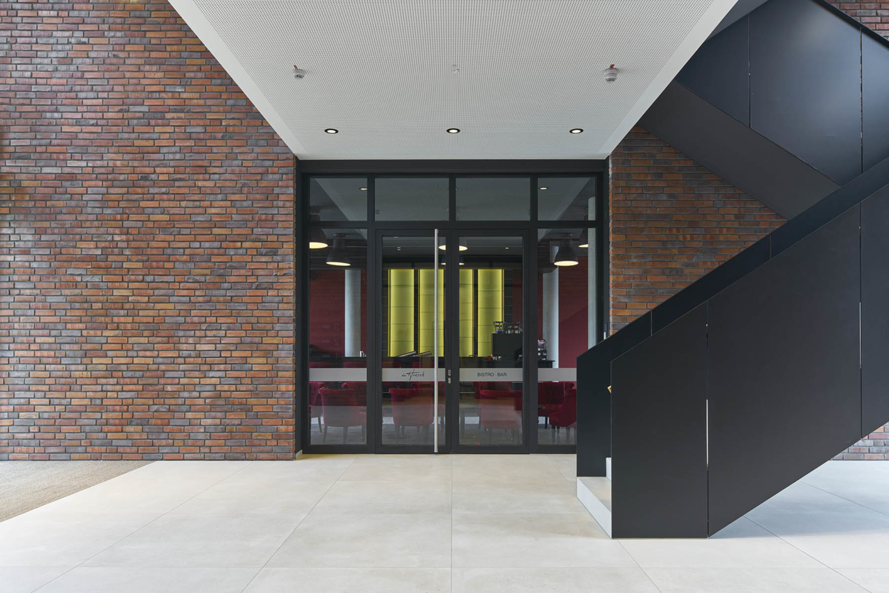 Het restaurant maakt indruk met zijn royale glazen gevel aan de westkant, waardoor gasten een onbelemmerd uitzicht hebben op de historische hoogoven op het terrein van de oude staalfabriek PHOENIX West terwijl ze genieten van een gezellige maaltijd. De glas-in-lood gevel met veel glas aan de zuid- en noordkant biedt uitzicht tussen de Phoenixplatz en de toekomstige binnenplaats en straalt openheid uit.