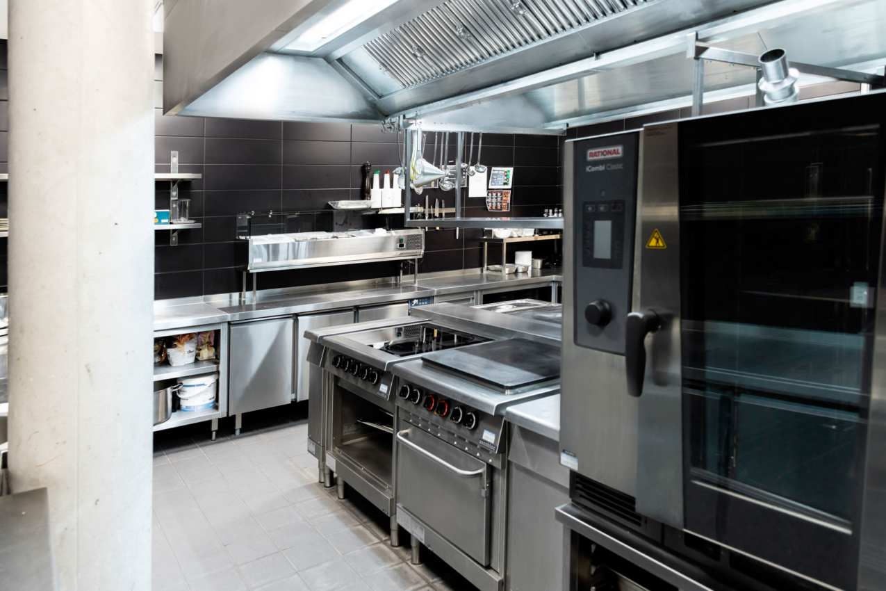 De bistroruimte is ideaal voor kleinere bedrijven. De keuken die daar geïnstalleerd is, is ontworpen voor een kleiner cateringconcept, terwijl de restaurantkeuken aanzienlijk meer ruimte biedt. Het omvat nevenruimten in de kelder met opslagfaciliteiten en kleedkamers voor werknemers.
