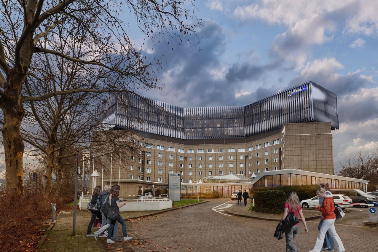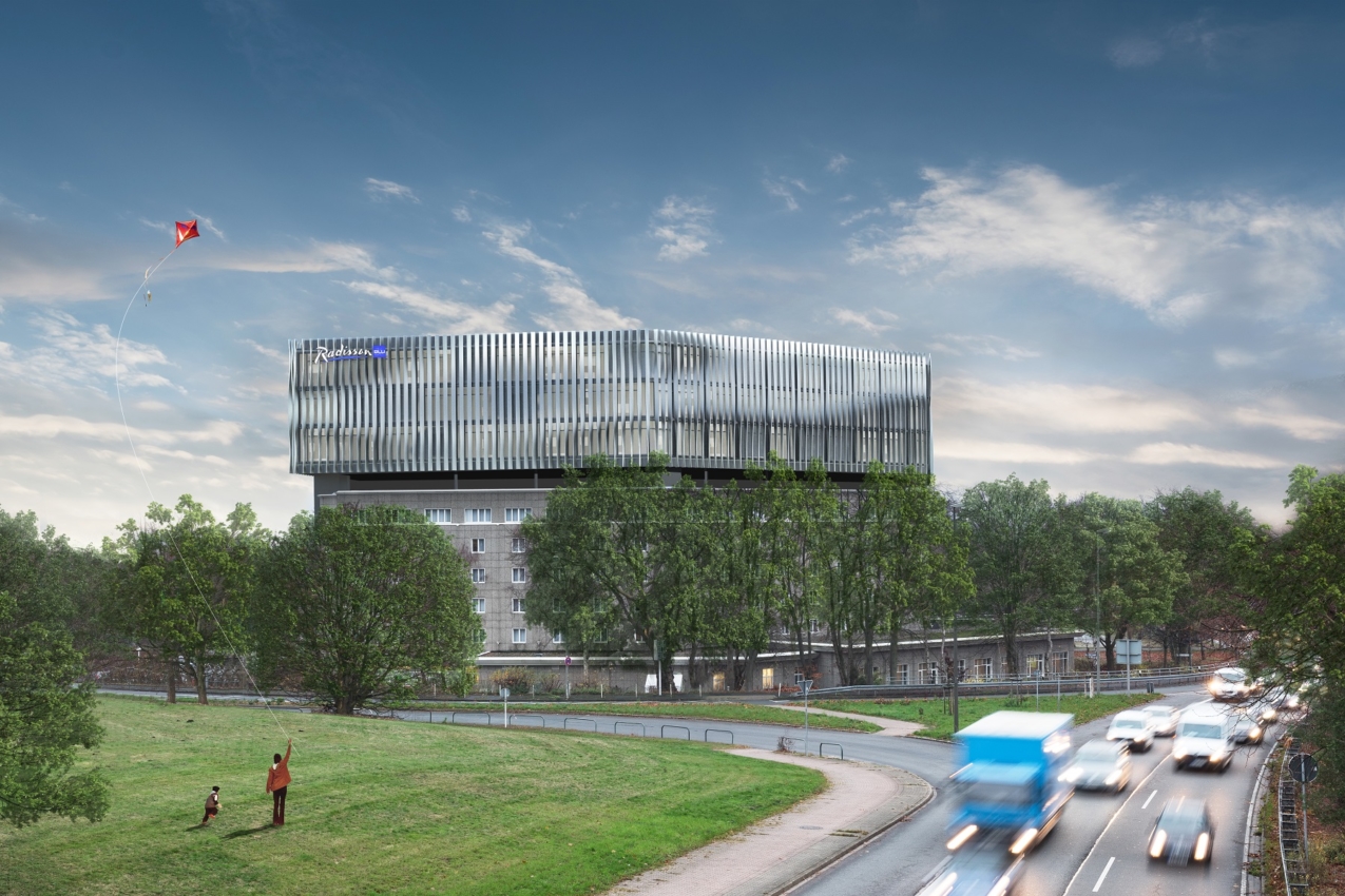 De uitbreiding van het bestaande Radisson Blu hotelgebouw biedt niet alleen de mogelijkheid om het aantal aangeboden kamers aanzienlijk te verhogen. Tegelijkertijd biedt het de stedenbouwkundige mogelijkheid om het gebouw, dat achter de bomen is verdwenen, te verheffen in de zin van “solitairen in de groene ruimte” en zo een opvallende entree tot de stad te formuleren.