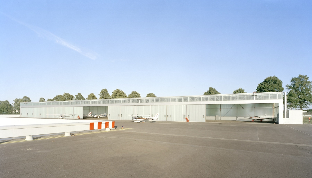 Dit “dubbeldekker”-concept is een geslaagd antwoord op de krappe ruimtelijke situatie, waarbij de gebruikers – privéluchtvaart boven en commerciële luchtvaart onder – van elkaar worden gescheiden om een duidelijk