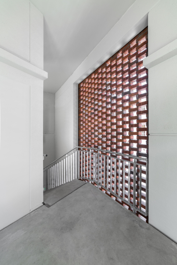 Door de parkeerplaatsen te concentreren, garandeert de parkeergarage vrijheid van auto’s op de campus. Het biedt ook potentiële parkeerruimte voor de culturele evenementen die ’s avonds in de buurt plaatsvinden. Barrièrevrije parkeerplaatsen en parkeerplaatsen voor vrouwen bevinden zich bij de uitgang op het laagste niveau. Verlichting via aanwezigheidsdetectoren en voortdurende videobewaking binnen het gebouw zorgen voor veiligheid.