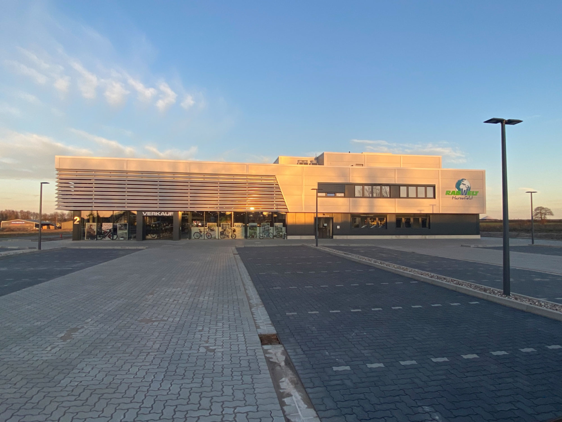 Budowa zakończona, przeprowadzka zakończona – nowy Radwelt Harsefeld został otwarty i oferuje swoim klientom w gminie Dolna Saksonia wyjątkowe zakupy na dwóch kółkach. Nowoczesny nowy budynek na Rümelswiese, zaprojektowany przez SHA Scheffler Helbich Architekten, ma powierzchnię sprzedaży ok. 1000 m², powierzchnie warsztatowe i administracyjne po ok. 220 m² każda oraz powierzchnię magazynową na trzech poziomach o łącznej powierzchni ok. 2000 m². Istnieje również opcja rozszerzenia tych obszarów o rozszerzenie na wschód. Tak więc przyszłość jest już brana pod uwagę.