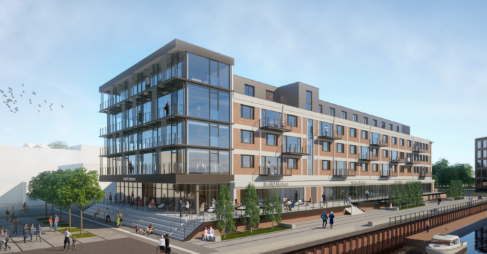 Am Dortmunder Hafen entstand aus dem ehemaligen Speichergebäude der Lensing Media Port. Der transformierte Bestandsbau beherbergt fortan einen einzigartigen Nutzungsmix, denn das neue Nutzungskonzept sieht digital- und medienaffine Firmen vor – und erzeugt gleichzeitig eine Öffnung des Areals gegenüber den benachbarten Wohngebieten und der allgemeinen Öffentlichkeit. Digitalagenturen, Gastronomie und Tagungsräume füllen das ehemalige Lagergebäude am Dortmunder Hafen mit neuem Leben. Das Hafenquartier Südliche Speicherstraße wird so zu einem neuen digitalen und urbanen Viertel, das von Austausch und Zusammenarbeit lebt und profitiert. Und das alles in idealer Lage: Citynah, als „Tor der Stadt“ und direkt am Wasser, das zum Flanieren einlädt. Zum Hafenbecken und zum neuen Speicherstraßenplatz hin wird das Erdgeschoss transparent geöffnet und verbindet sich großzügig mit dem öffentlichen Raum. Die Veranstaltungsbereiche werden durch die Gastronomiebetreiber bewirtschaftet und sind für größere Veranstaltungen zusammenschaltbar. Von der Innenstadt aus erreicht man das Quartier „Südliche Speicherstraße am Stadthafen“ sowohl mit dem Auto als auch mit den öffentlichen Verkehrsmitteln in wenigen Minuten.