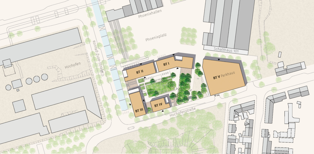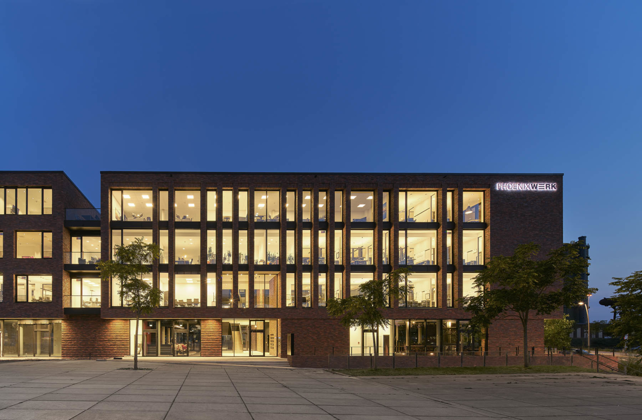 Inmitten des alten Stahlwerksgeländes auf Phoenix West sind unmittelbar zwischen Warsteiner Music Hall (früher: Phoenixhalle) und dem historischem Hochofen die ersten beiden Bauteile eines zukunftsweisenden Büroensembles fertiggestellt worden. Das PhoenixWERK fügt sich selbstverständlich in die historische Umgebung ein und schafft zugleich ein repräsentatives Arbeitsumfeld für seine Nutzer. Eine nachhaltige Bauweise, modernste Technik und hochwertige Materialien sind dabei wesentliche Merkmale. Auf individuelle Wünsche und Anforderungen der Mieter und Investoren kann reagiert werden. Gastronomieeinheiten im Erdgeschoss, der begrünte Innenhof, Dachterrassen sowie eine große Anzahl an Stellplätzen sind zusätzliche Pluspunkte.