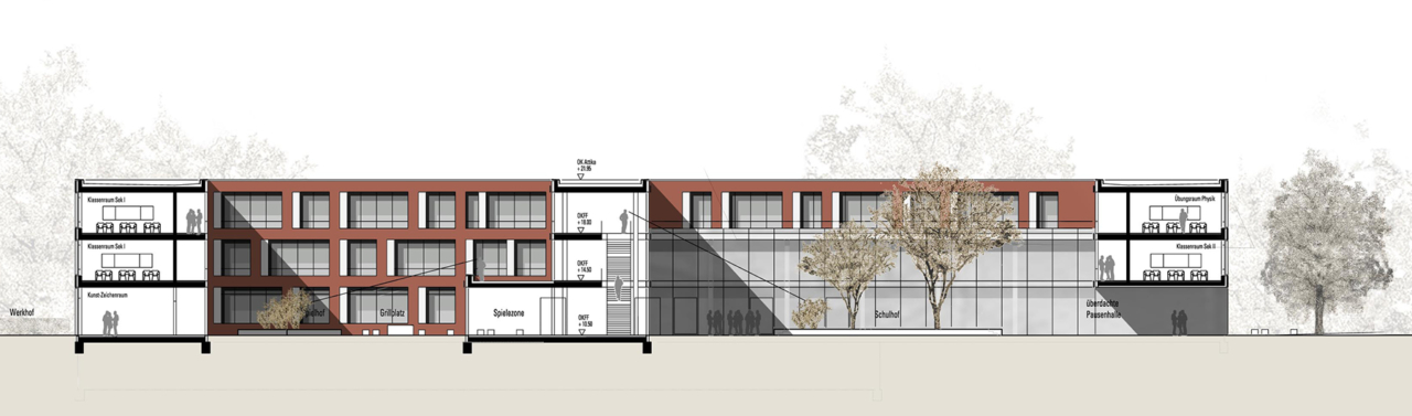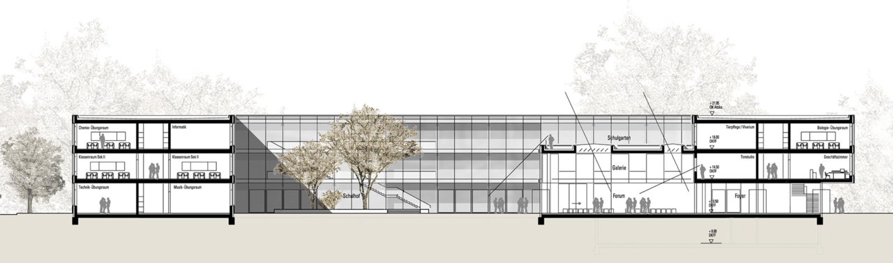 pädagogischen Ansprüchen nicht mehr genügende Schulgebäude zu ersetzen und für rund 1.200 Schüler einen neuen zeitgemäßen Ort des Lernens und Lebens zu schaffen.