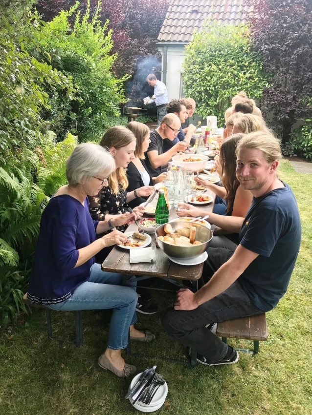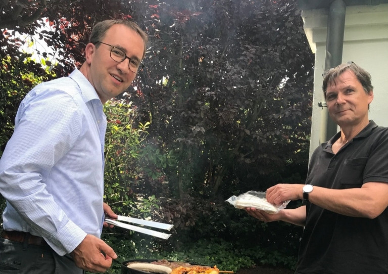 Juntamente com a colega Sabine Wittrien, que celebra dez anos na SHA este verão, e o aniversariante Christoph Helbich, Volker convidou espontaneamente toda a equipa para uma pausa para almoço com churrasco. É assim que se trabalha!